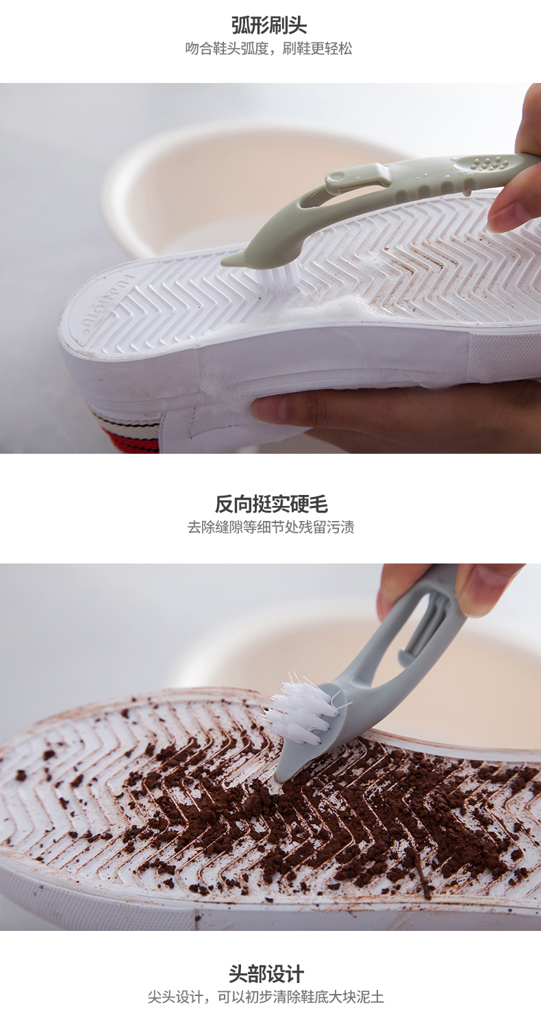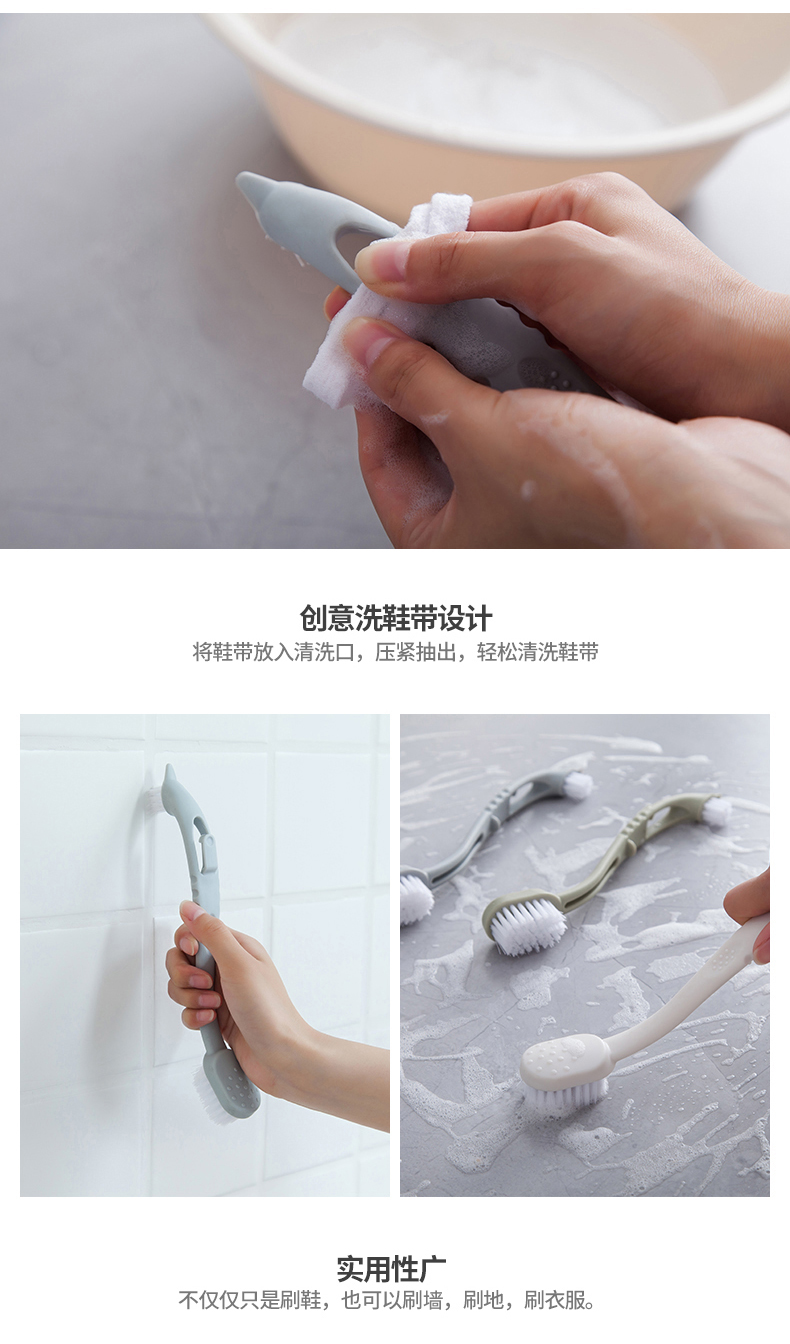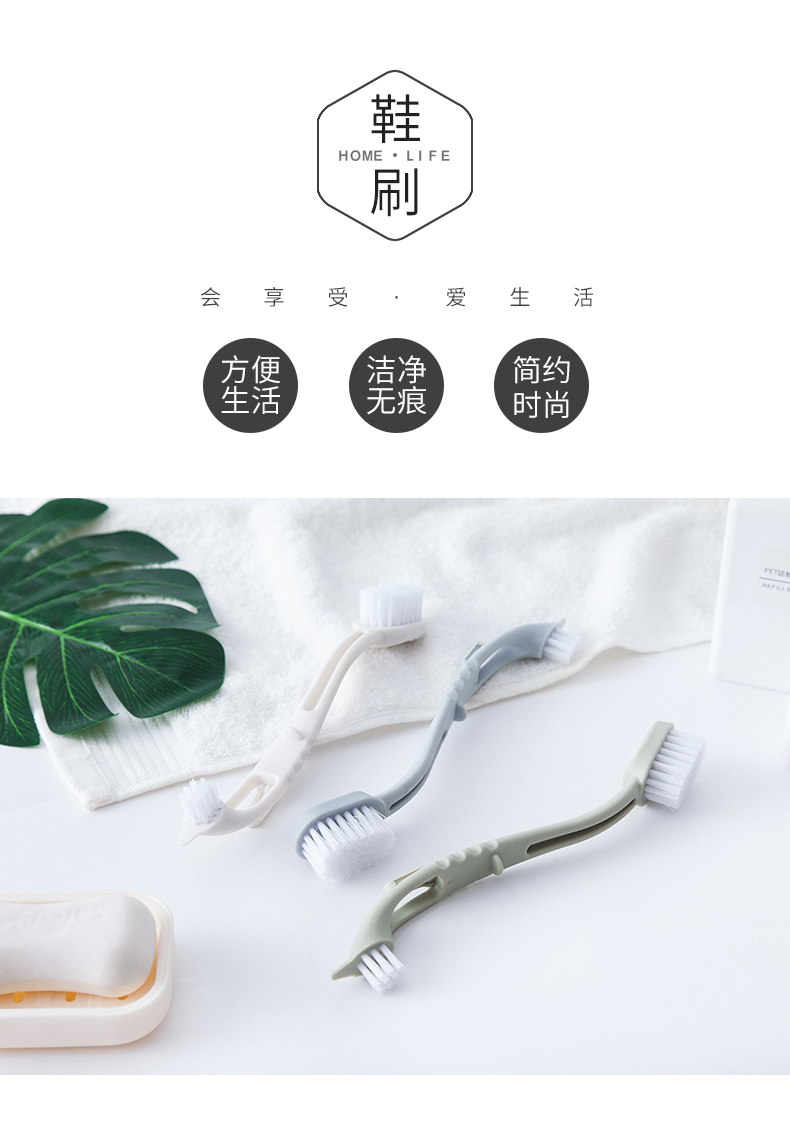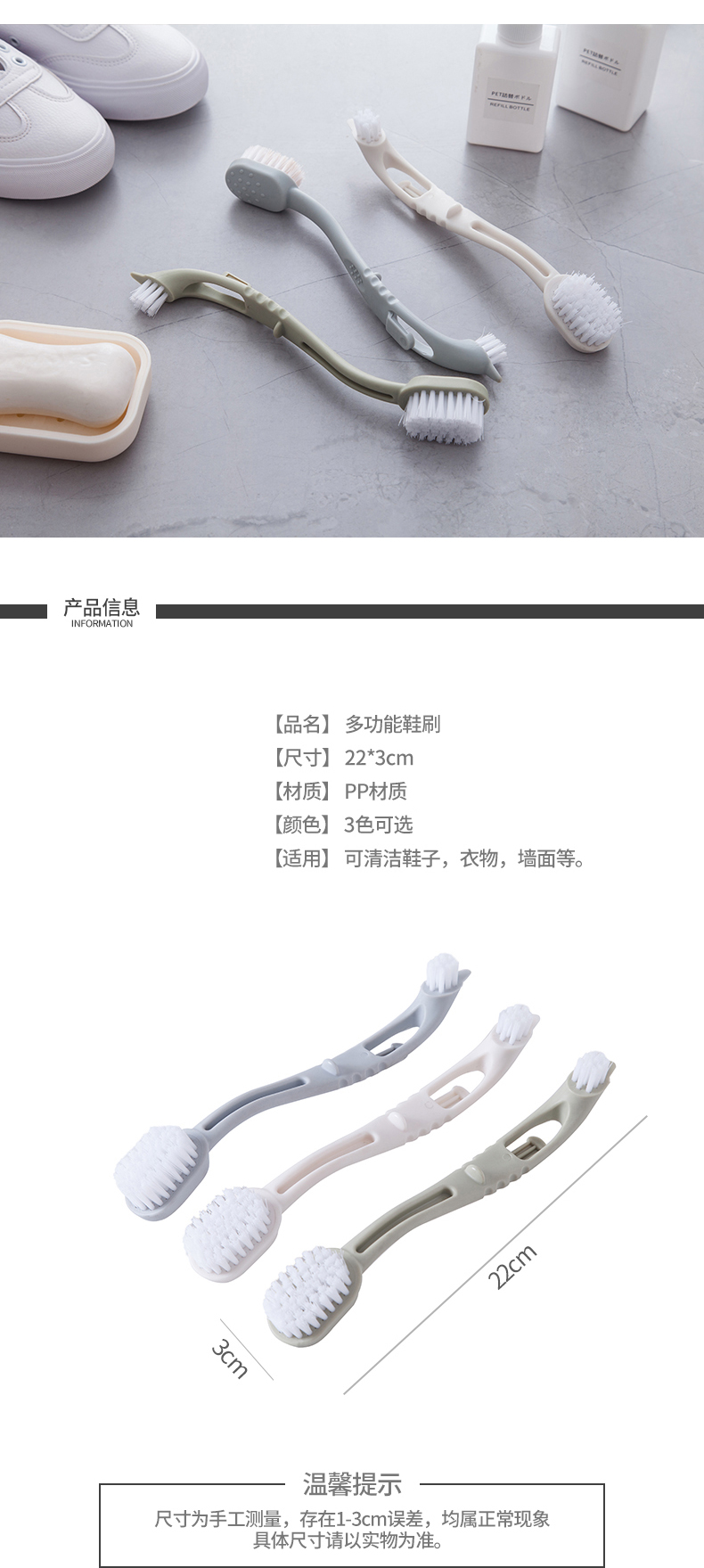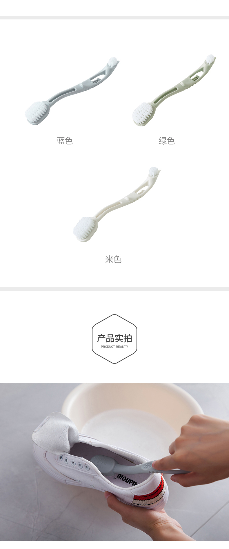 商品名称:多功能双头弯柄清洁刷 鞋刷--绿色 商品包装:吸卡 实物拍摄:全自拍图 商品尺寸:22*3cm 商品材质:PP