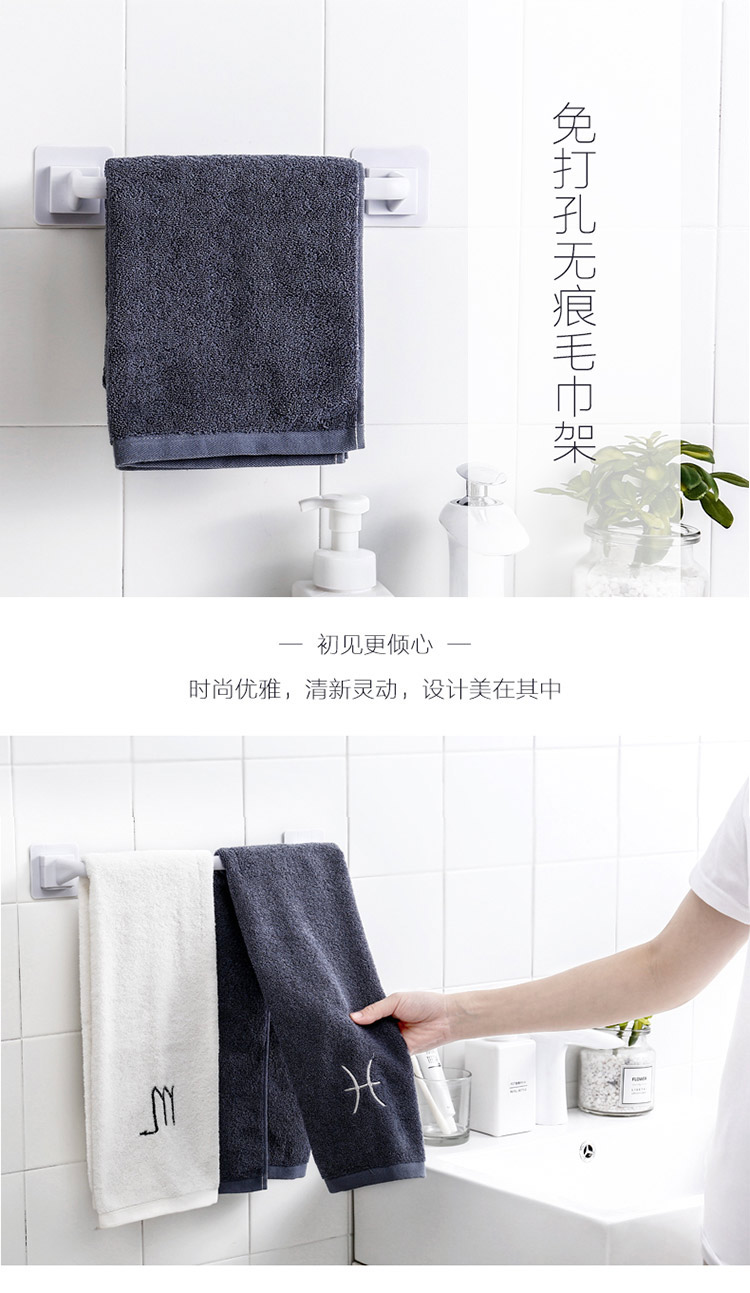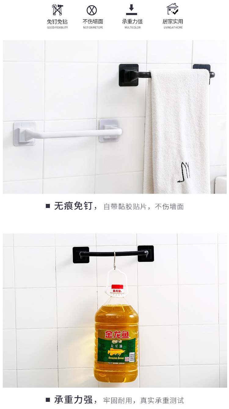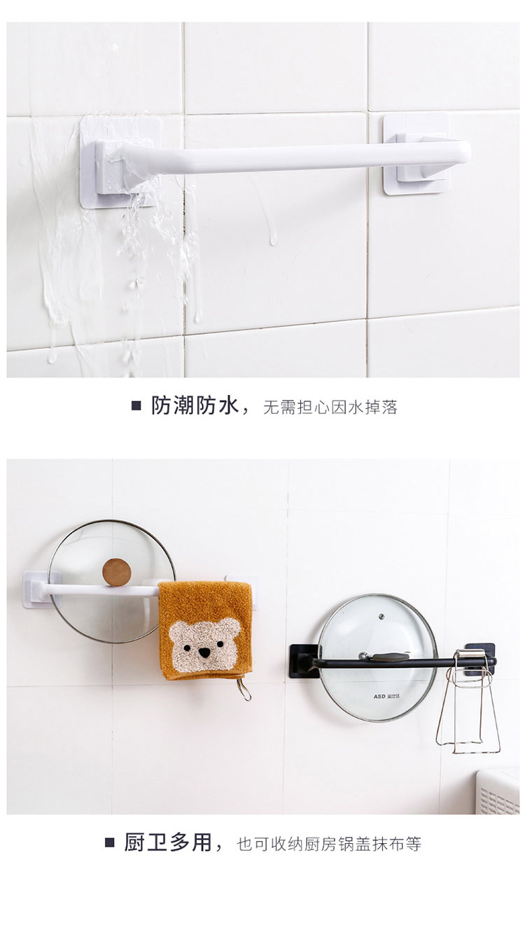 免打孔无痕毛巾架 锅盖抹布收纳架--长款白色