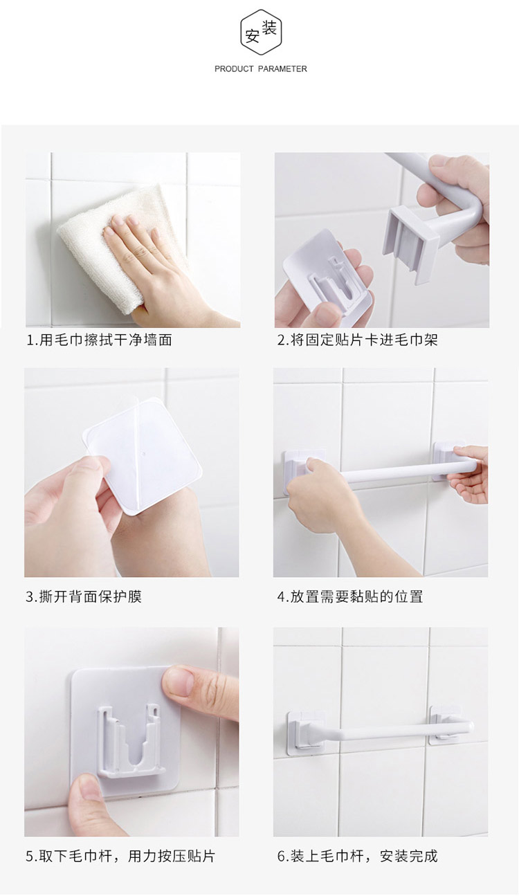商品名称:免打孔无痕毛巾架 锅盖抹布收纳架--短款白色 商品包装:无包装 实物拍摄:全自拍图 商品尺寸:7*7*30.5cm 商品材质:PP