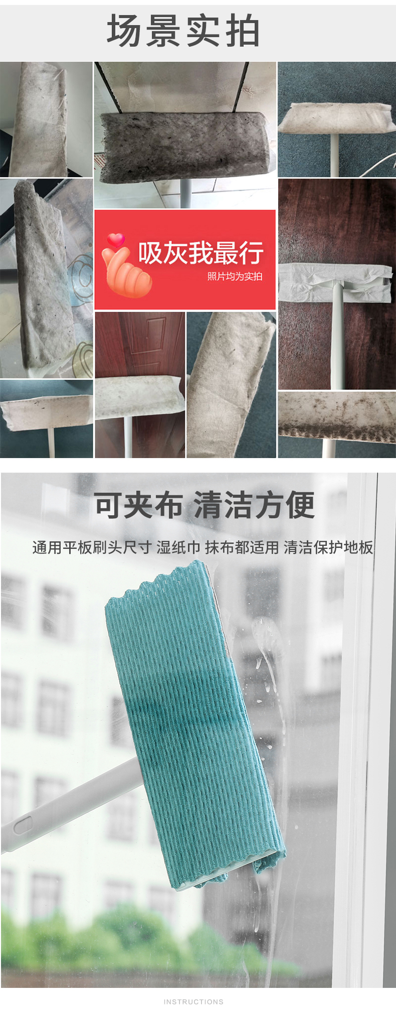 商品名称:静电除尘干湿拖把 一次性免手洗拖把(OPP袋装) 商品包装:OPP袋 实物拍摄:全自拍图 商品尺寸:24.7*10*102cm 商品材质:PP+除尘纸 外箱尺寸:70*45*45cm 单个拖把独立盒装,本品仅含拖把一个,需正常使用请搭配购买配套使用的30片干巾或20片装湿巾。